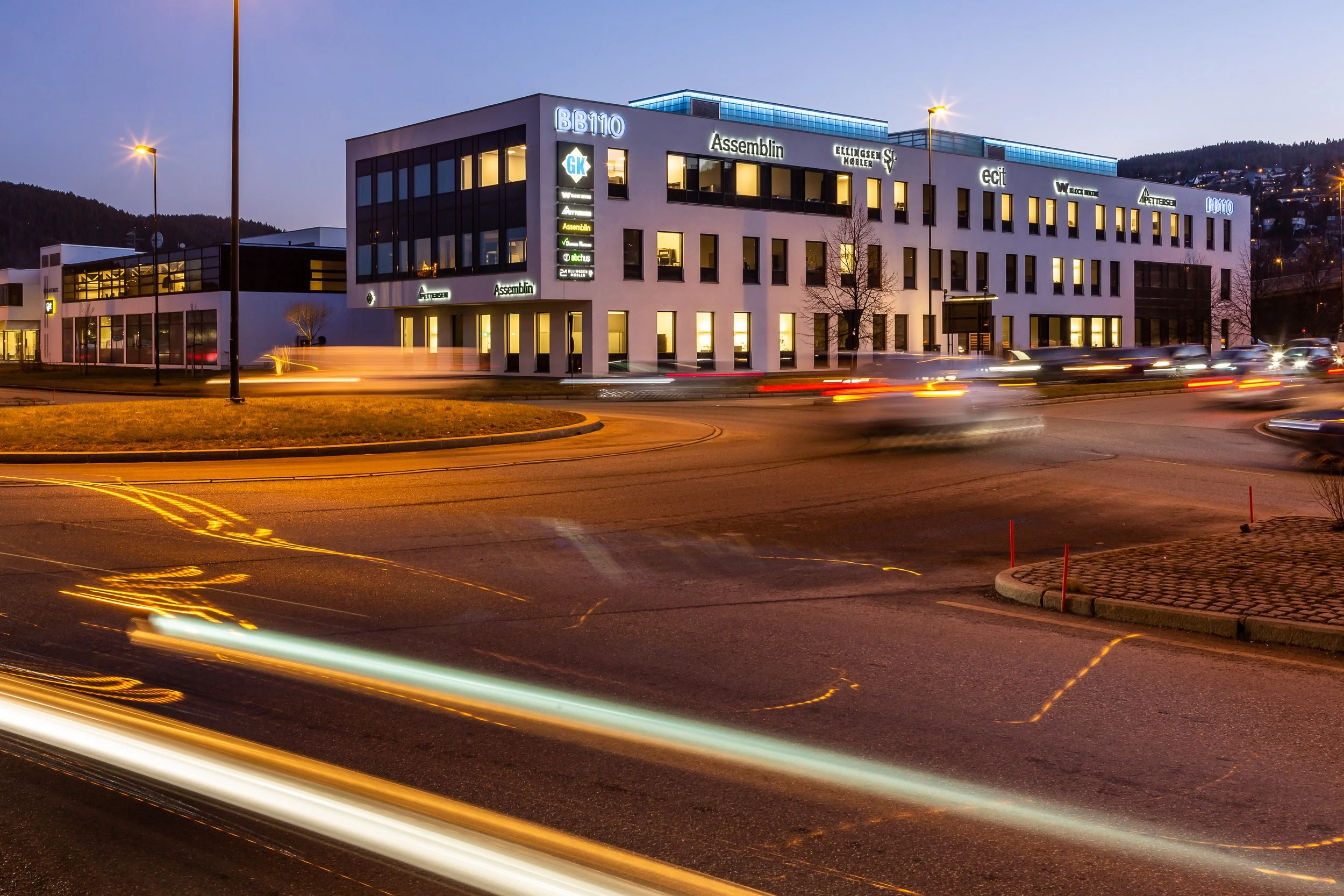 BB110 er et kontorbygg, bestående av tradisjonelle kontorlokaler oppover i etasjene, mens arealene på plan 1 består av større, sammenhengende arealer som legger til rette for mer utadrettete virksomheter. Bebyggelsen er formet med tre fløyer som mot vest er koblet sammen med en lengre bygningskropp. De to fløyene mot sør er løftet opp en etasje, som gir bebyggelsen et lett uttrykk. Prosjektet består også av et eksisterende bygg oppført i funksjonalistisk stil. Nybygget er lagt slik at dette bygget fremstår som et eget bygg, med sin egen karakter. Vindusåpninger er etablert med en klar, vertikal retning, og med en uregelmessig plassering. Dette gir en mer leken komposisjon av fasadene i kontrast mot de stramme hoved-volumene.