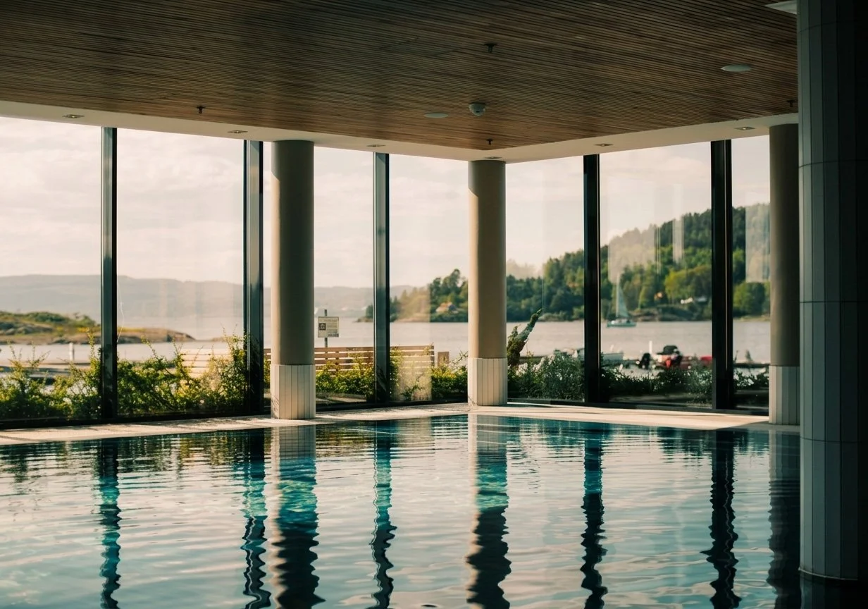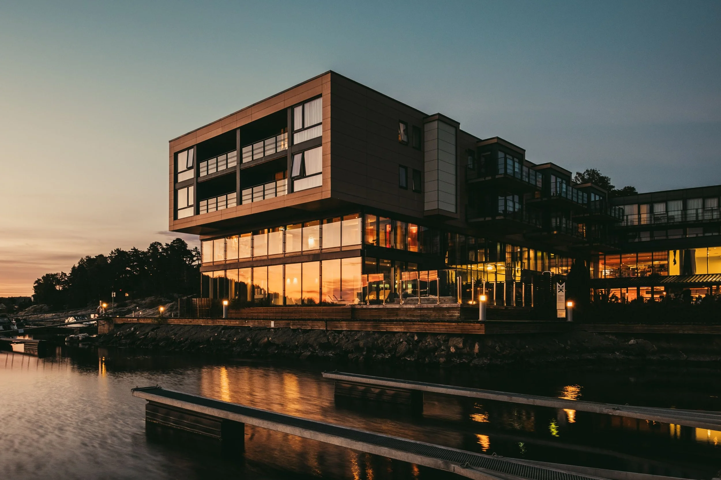 Son Spa ligger på vakker og historisk grunn, der de gamle båtbryggeriene i Son en gang lå. Hotellet ligger helt i vannkanten med både småbåthavn og badebrygge. Bebyggelsen består av to lameller som ligger med gavlen mot sjøen. Volumene er knyttet sammen i bakkant, slik at bygningene danner et lukket gårdsrom og et uteområde som åpner seg opp mot fjorden.